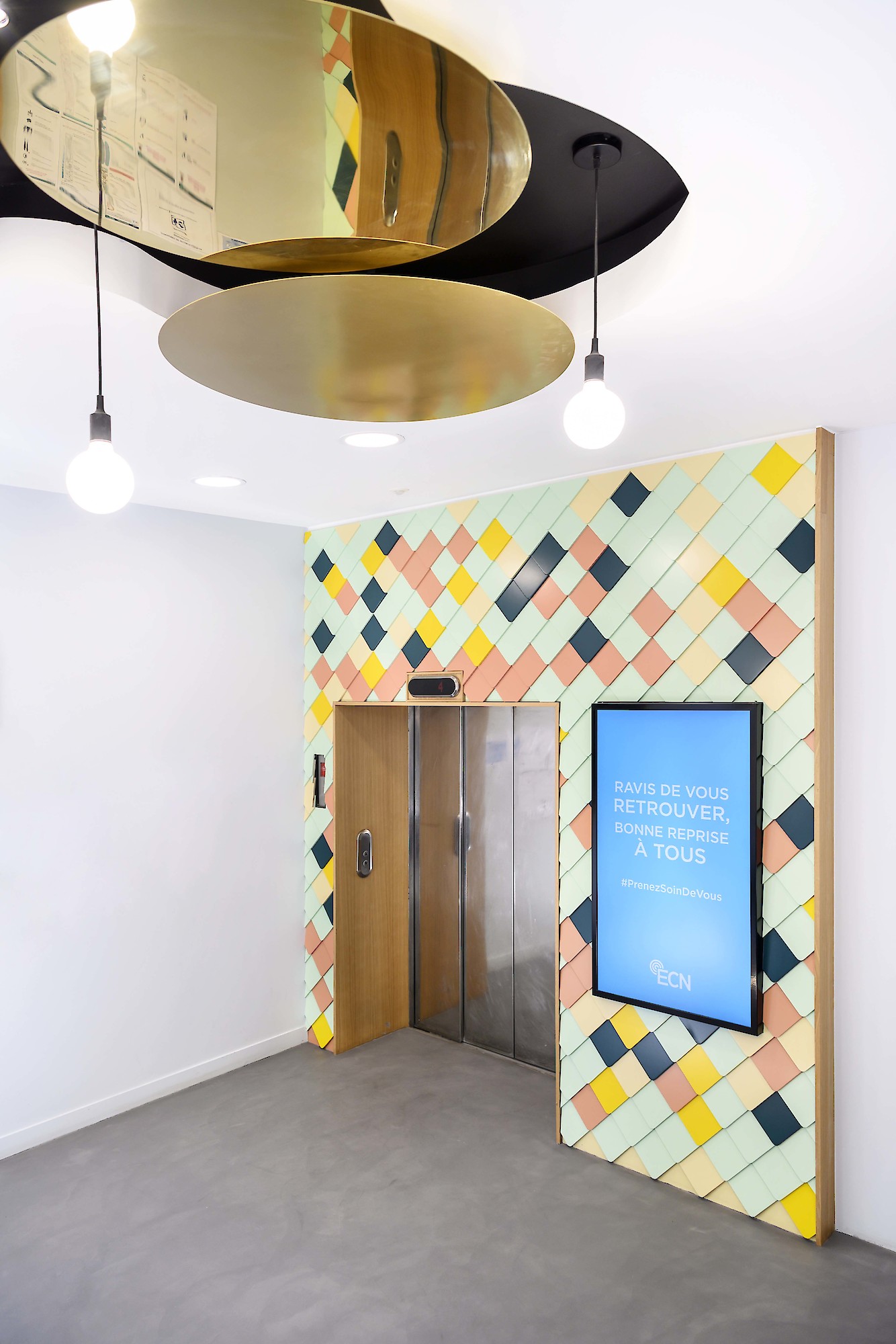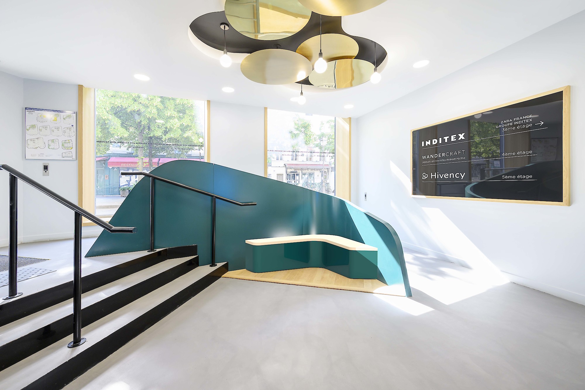 Situé en plein coeur du Marais, rue Pernelle, aux abords de la rue de Rivoli ce petit Hall d'Accueil, jusque là peu considéré, a bénéficié de la Touch Pierre & Maurice pour un résultat aux couleurs pastels et joyeuses. Une atmosphère positive destinée à mettre à l'aise les visiteurs, souvent des jeunes se dirigeant dans les bureaux de Zara pour un entretien de recrutement. Mais.aussi une atmosphère élégante et raffinée, destinée aux usagers, travaillant dans les lieux et méritant un accueil bienveillant !