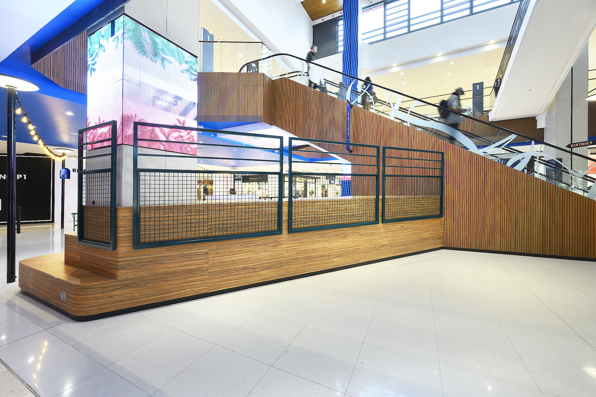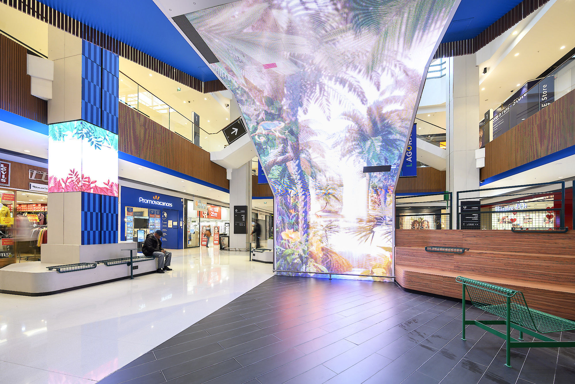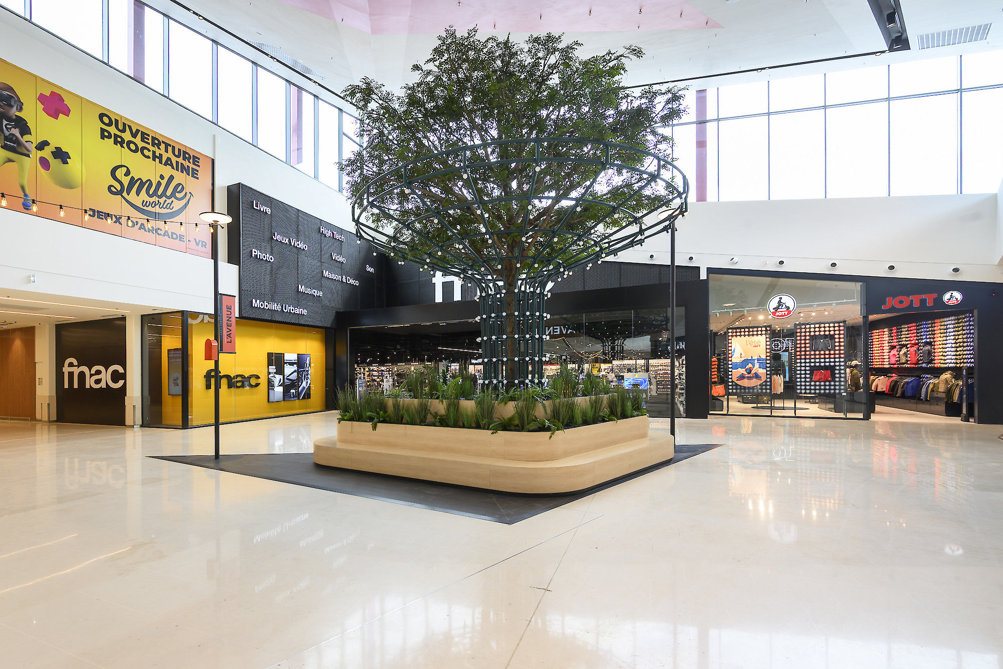 Nous travaillons à rythmer et surprendre, susciter l'envie de découvrir les autres espaces. Nous mettons en place un fil rouge mobilier et identitaire pour créer le liant entre toutes les parties du centre : extérieur / intérieur / extension. Nous apportons lisibilité, circulation, optimisation signalétique.