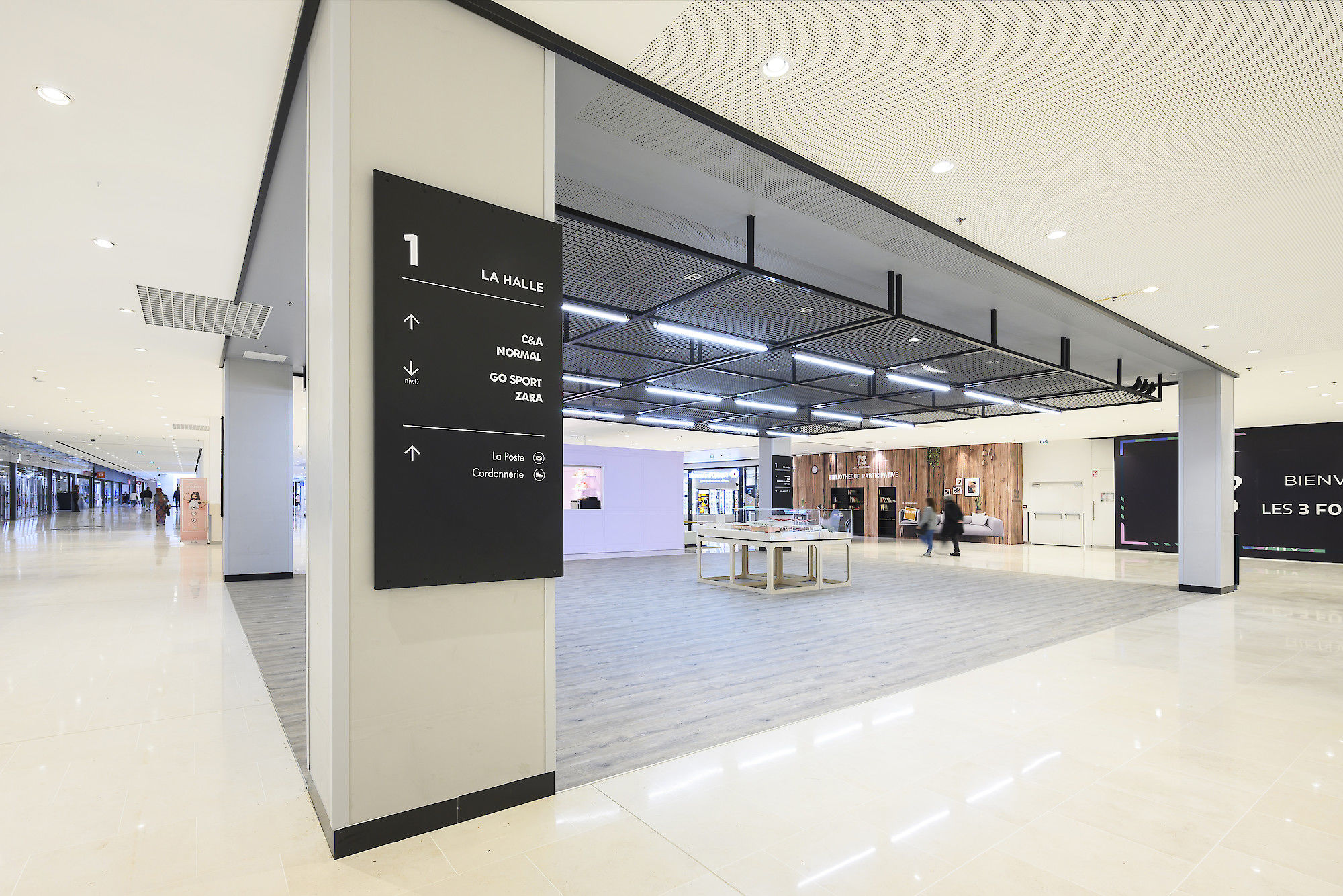 Dans ce contexte, il est confié à Pierre & Maurice la mission de réaliser le "liant" entre l'extention et l'existant. Nous prenons donc partie de faire de C3F une rue intérieure augmentée, polyvalente, servicielle et adaptée aux enjeux des centres villes. Pour faire pénétrer la ville dans le centre et faire sortir le centre dans les rues, nous attribuons des usages spécifiques aux différents espaces, pensés comme des lieux de vie à part entière de la ville et construits comme des éléments de repères jalonnant le parcours.
