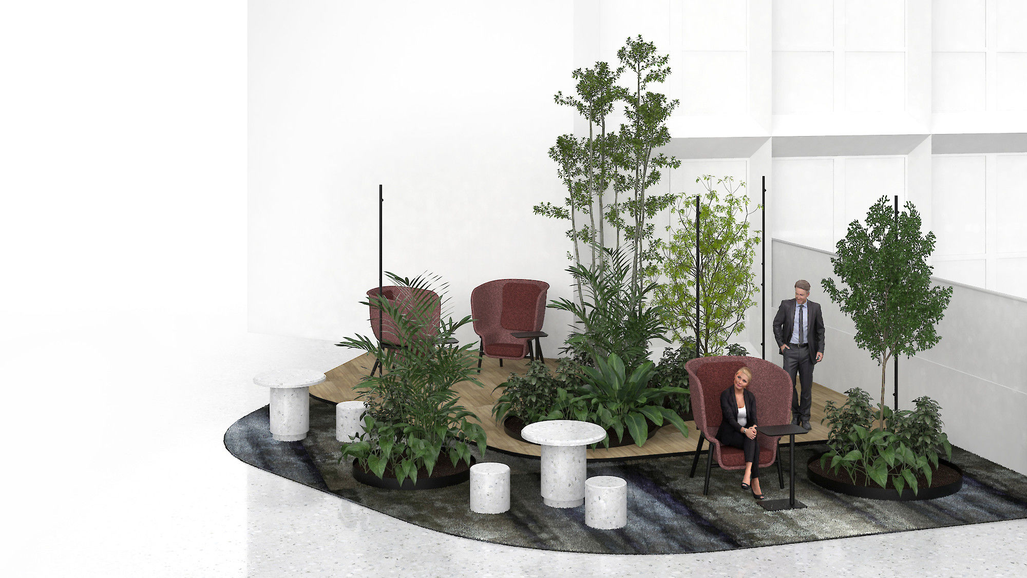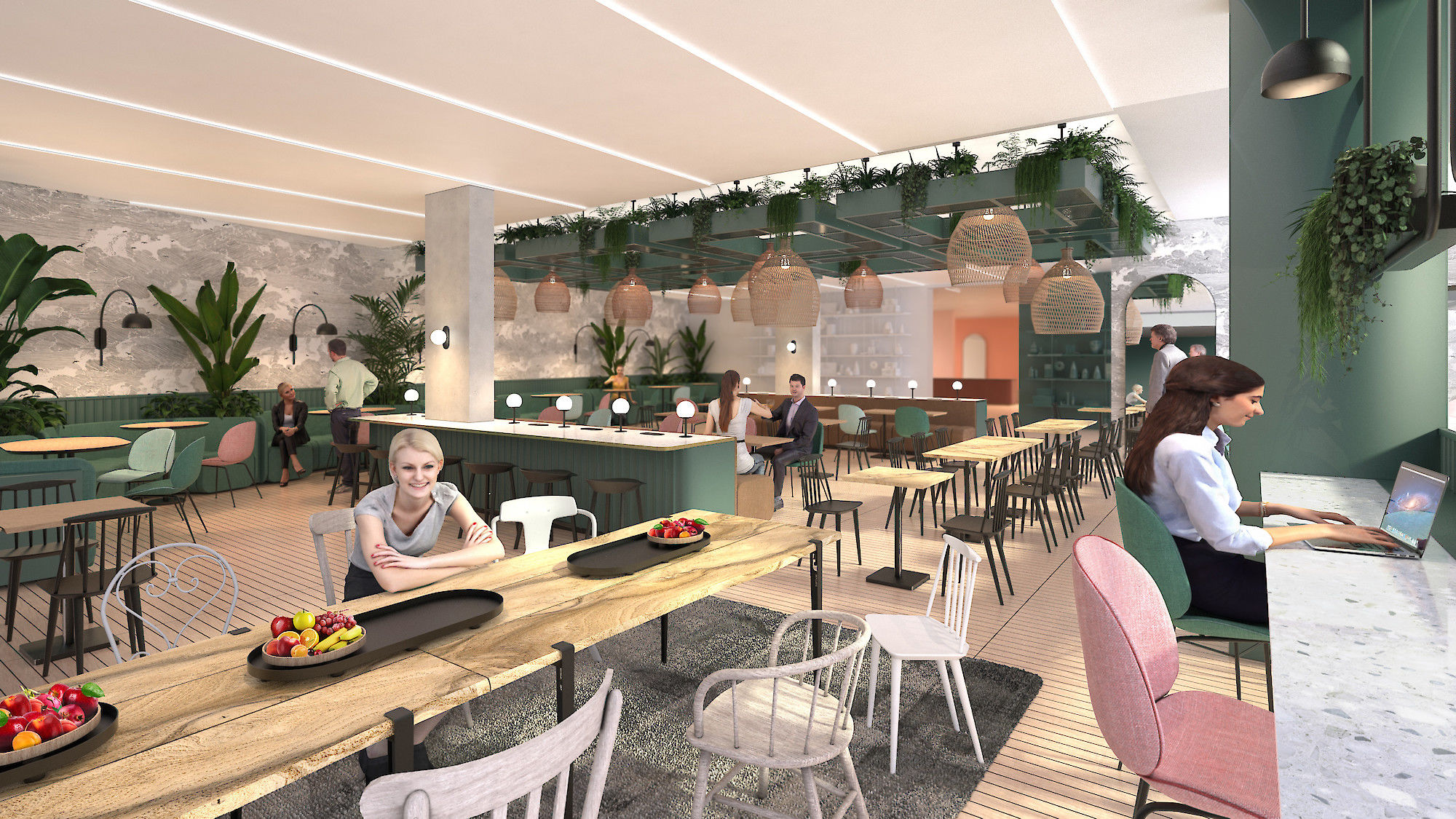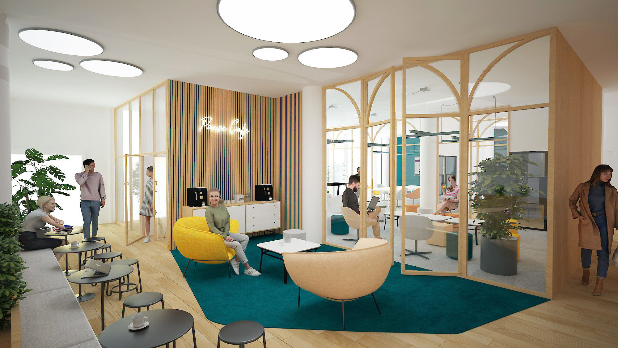 L’agence de design global « Saguez & Partners » a été désignée par Icade courant 2019 pour imaginer les différents usages de Fresk et inspirer le futur aménagement. Les flux et la programmation proposés par Saguez & Partners ont été validés, mais la patte stylistique proposée pour l’aménagement intérieur était à repenser. C’est donc à partir du fil rouge développé par Saguez & Partners que Pierre & Maurice à imaginé ce projet global d’aménagement intérieur.