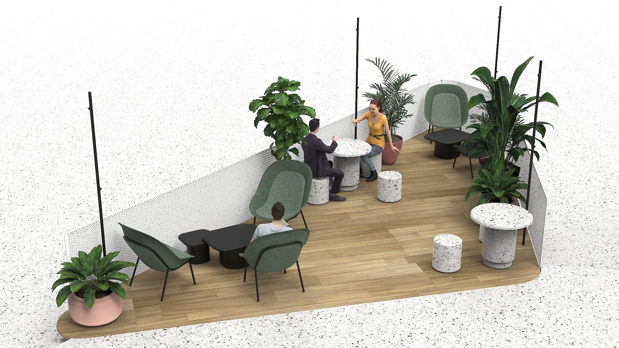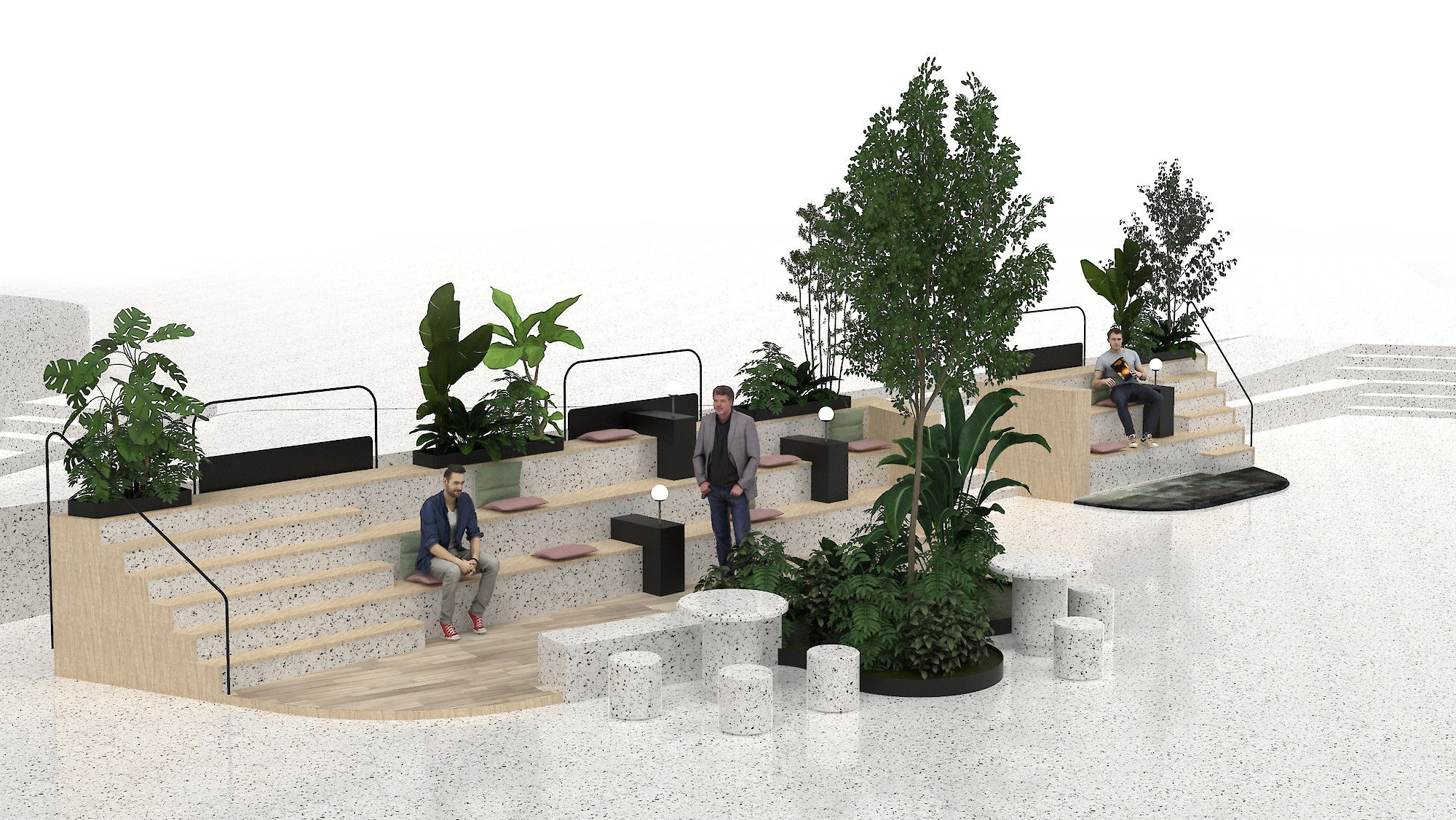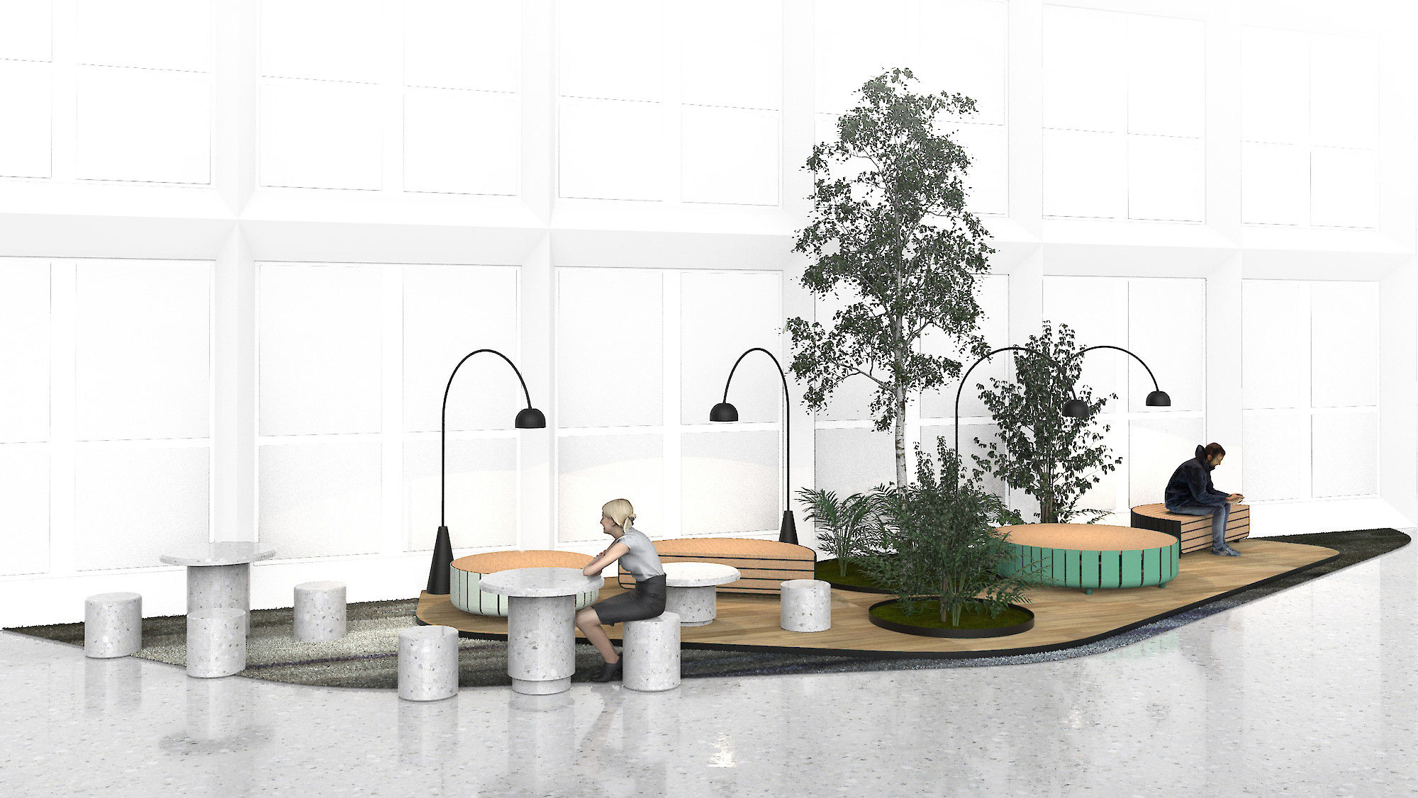 L’agence de design global « Saguez & Partners » a été désignée par Icade courant 2019 pour imaginer les différents usages de Fresk et inspirer le futur aménagement. Les flux et la programmation proposés par Saguez & Partners ont été validés, mais la patte stylistique proposée pour l’aménagement intérieur était à repenser. C’est donc à partir du fil rouge développé par Saguez & Partners que Pierre & Maurice à imaginé ce projet global d’aménagement intérieur.