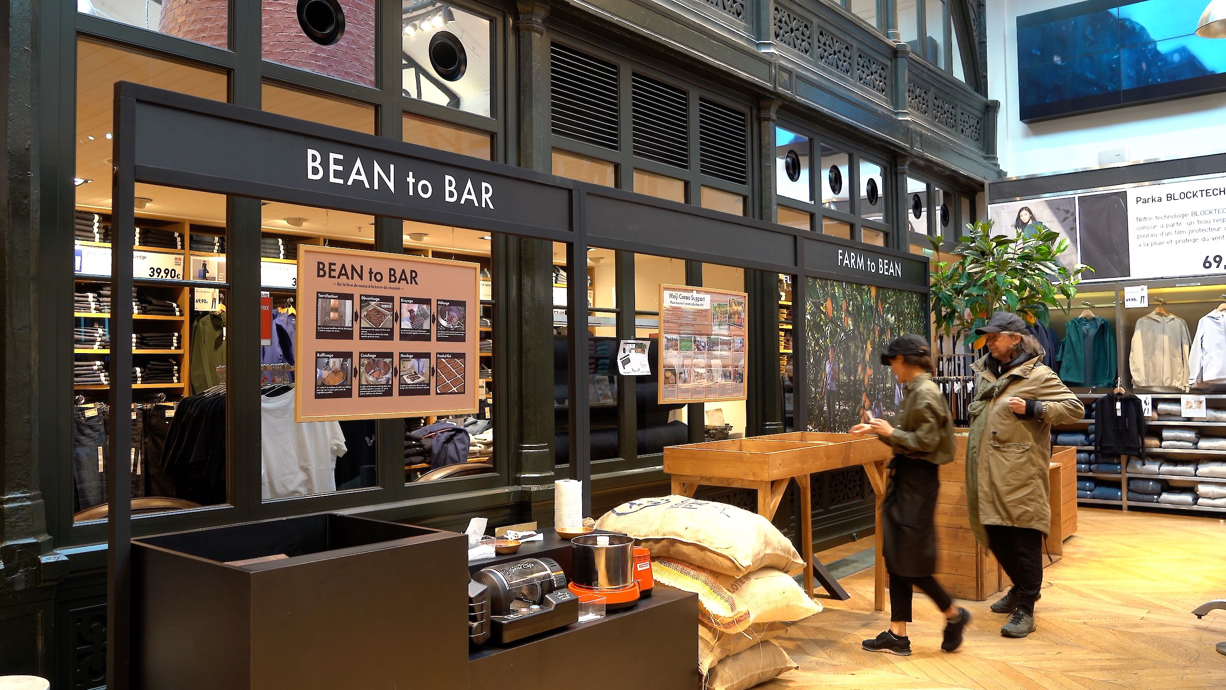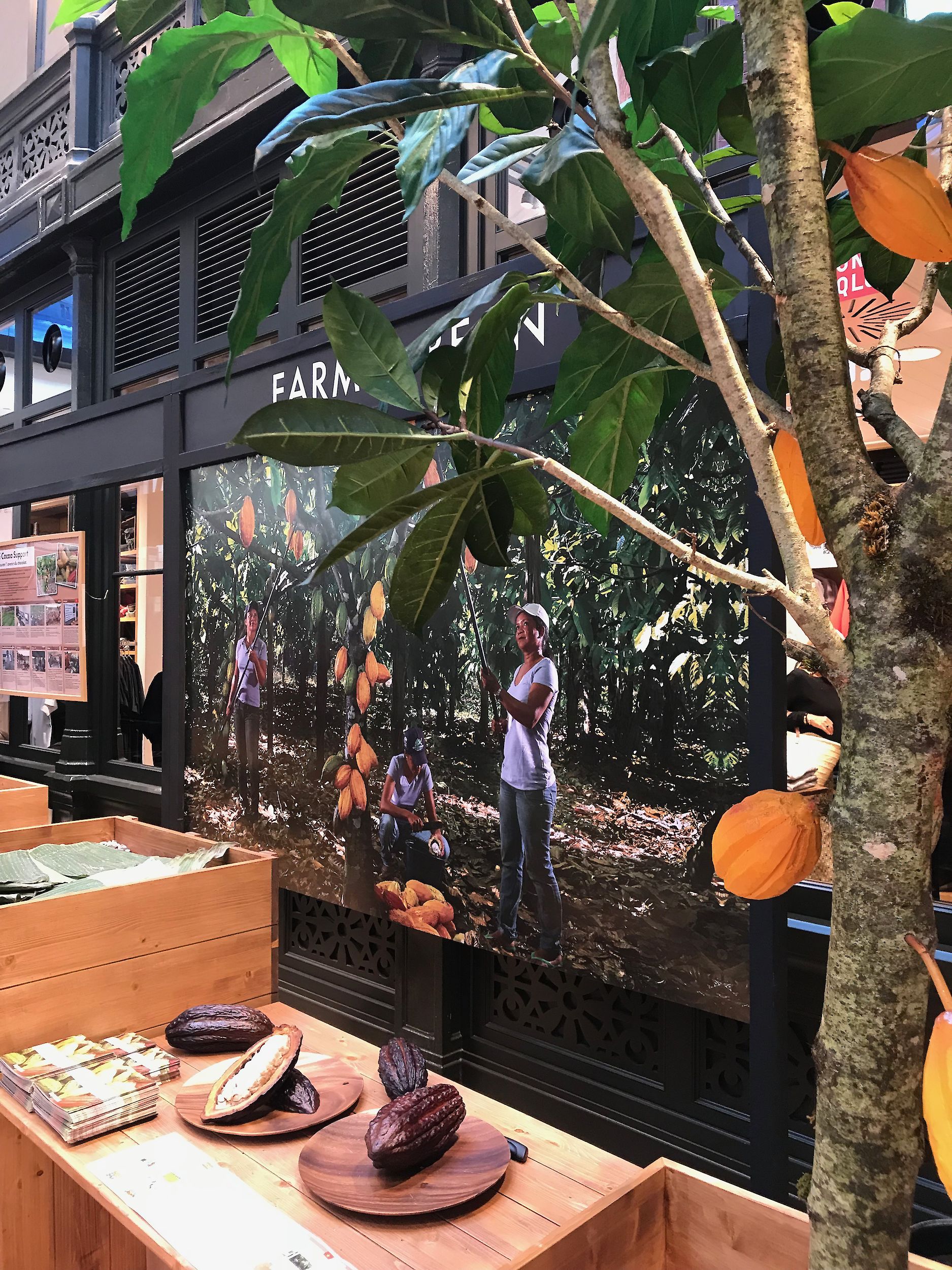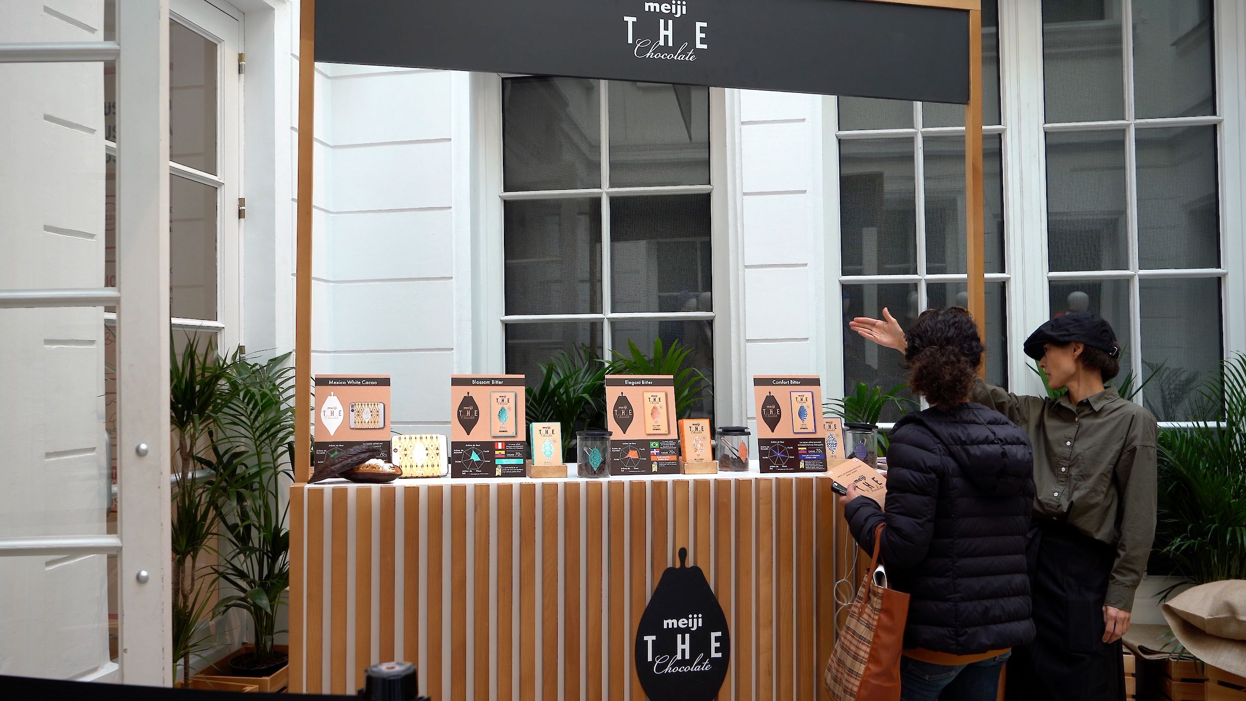 La marque japonaise meiji THE Chocolate s’y est établie le temps d’une scénographie éphémère. C’est avec un linéaire végétal et boisé qu’elle a retracé le procédé mythique de la fabrication du chocolat. Depuis l’arbre cacaoyer au Bean to Bar, meiji THE Chocolate a fait voyager, les visiteurs et leurs papilles, dans une jungle chocolatée.