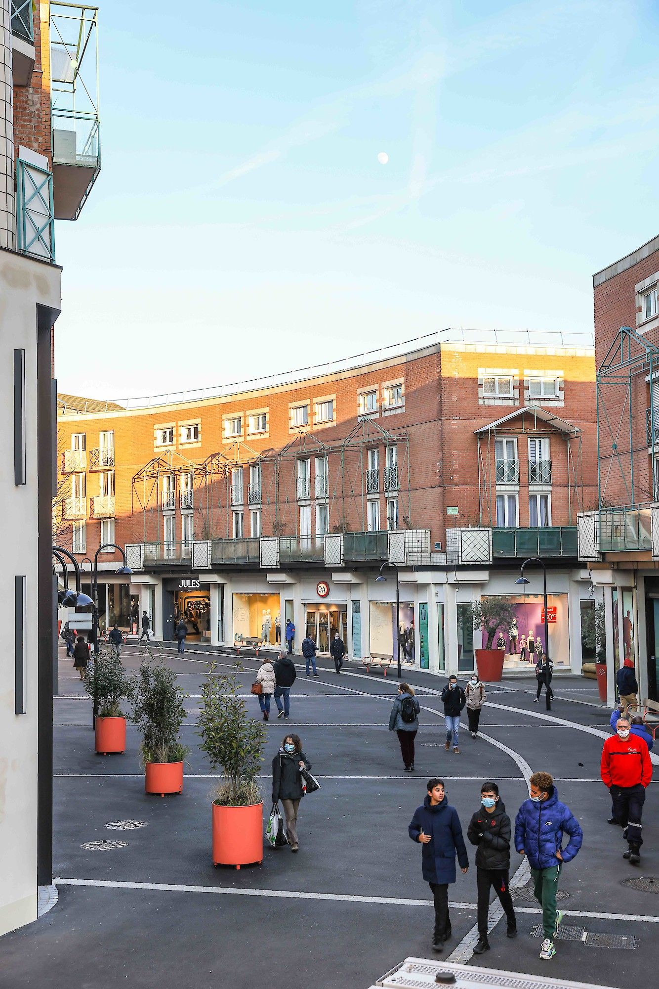 Ces éléments peinent en cohérence et dégradent la lecture des batiments. Alors Pierre & Maurice, sans faire la négation d'une architecture inscrite dans les années 60, bien au contraire, modernise et harmonise les rues pietonnes pour rendre la promenade plus agréable, répondant aux usages actuels à la diversités des attentes consommateurs (sécurité, propretée, couverture, confort etc.) mais aussi des habitants ! Car cette rue a la particularité d'être un centre ville à part entière !