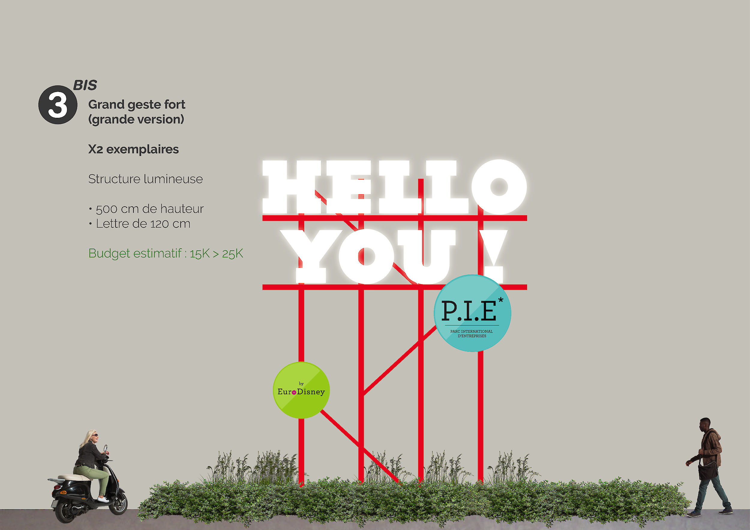 Pour devenir « The place to be », Pierre et Maurice répond aujourd’hui en proposant une pistes doter d’une signalétique forte composée d’une charte graphique cohérente, de panneaux de communications et d’aménagements spécifiques.