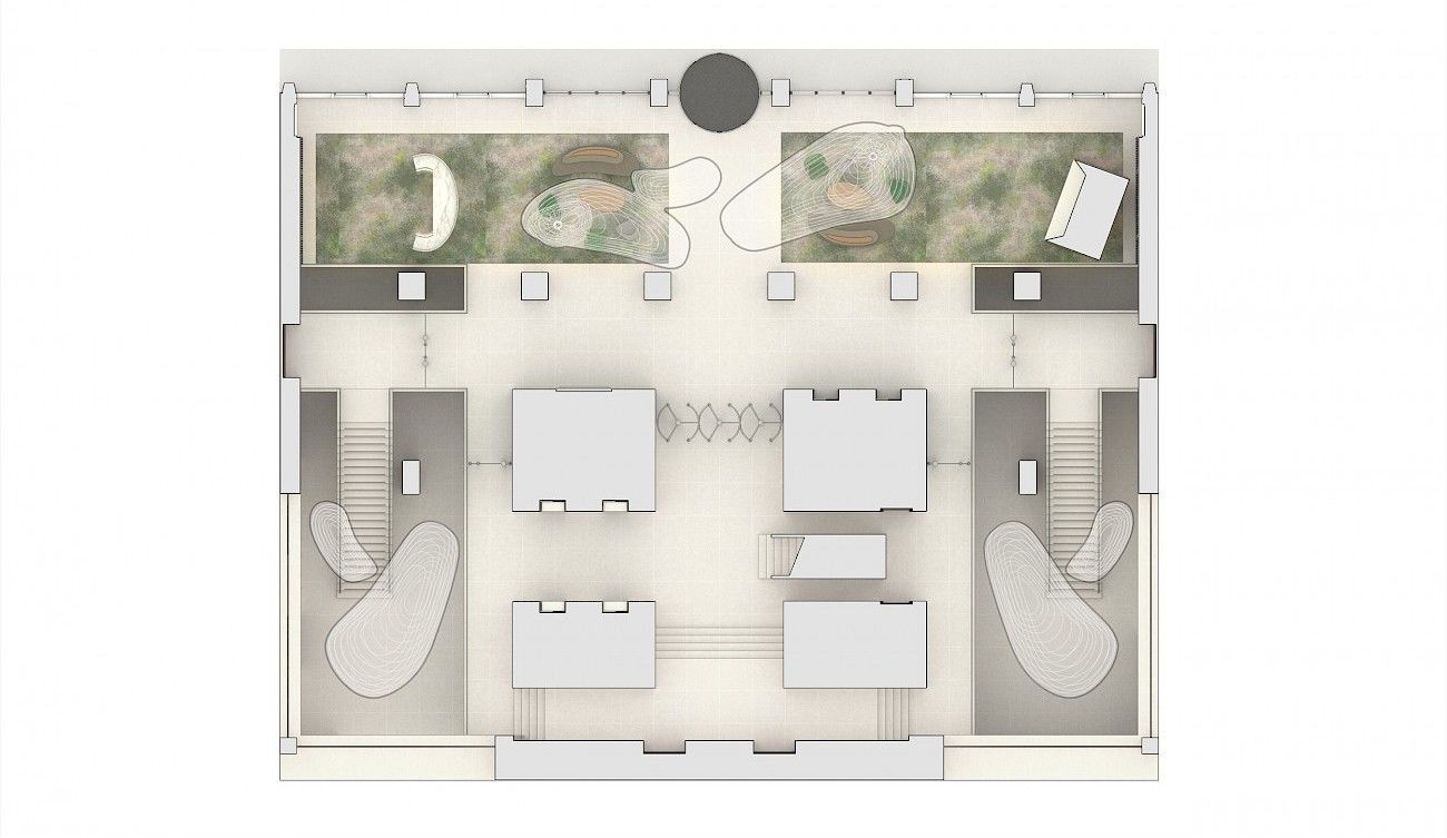 Ce projet incarne notre vision d’une architecture « vivante », qui au delà de son usage, de ses qualités formelles et graphiques, s’intéresse aux visiteurs. En fonction du nombre de personnes présentes sur place ou du contexte événementiel les arbres s’activent, ils sont parcourus d’un flux d’énergie, dont la couleur change. Des sons de forêt s’accentuent, des odeurs de bois et d’orée se diffusent, les écrans présents s’animent etc.