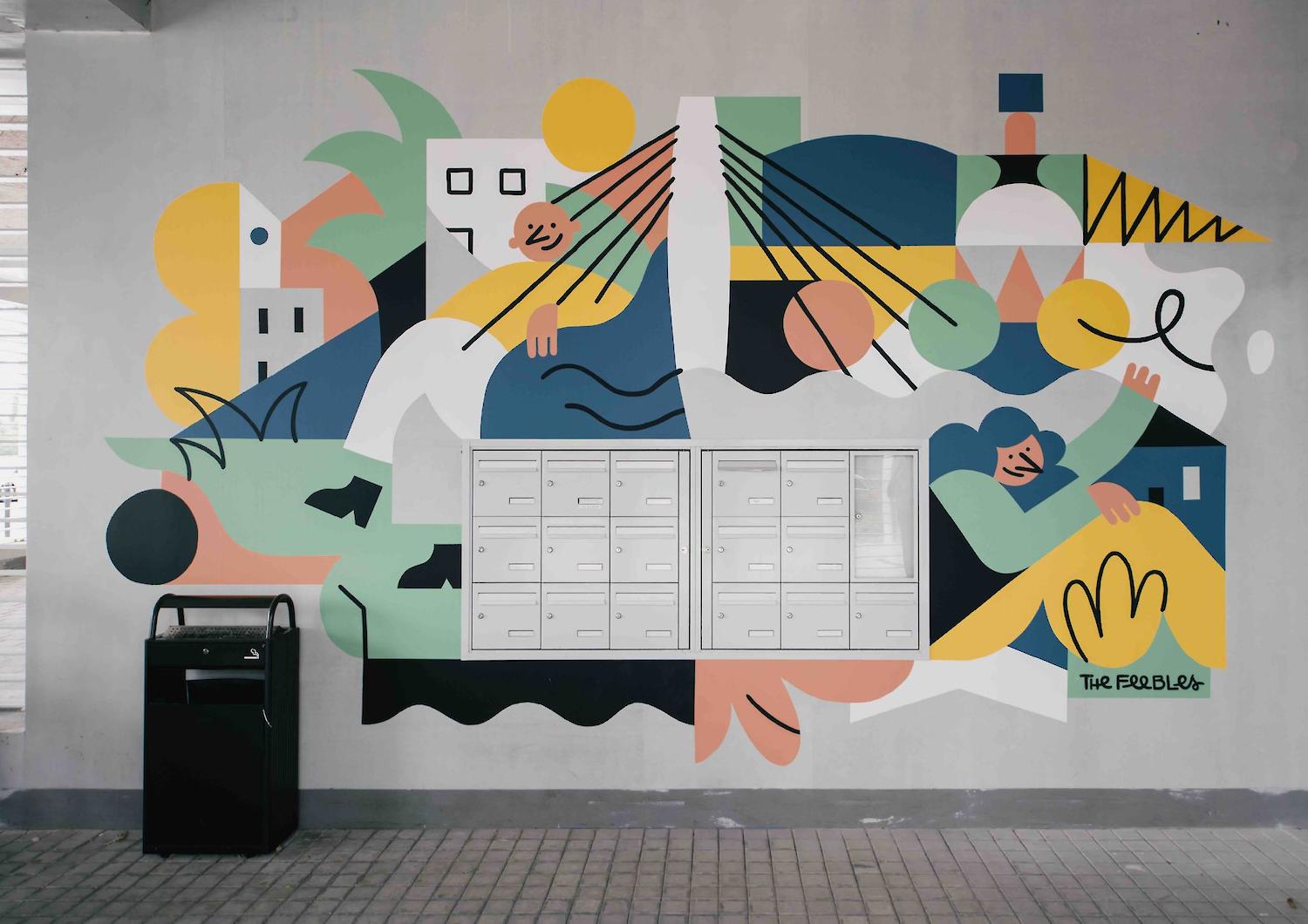 A travers la grille on apperçoit une oeuvre originale des Feebles, sur le thème de l'ile de Nantes et de sa croissance urbaine. Puis la balade continue dans le hall et nous guides aux étages, aux sous-sol et parking avec la promesse de ne plus perdre jamais personne sur le chemin :)