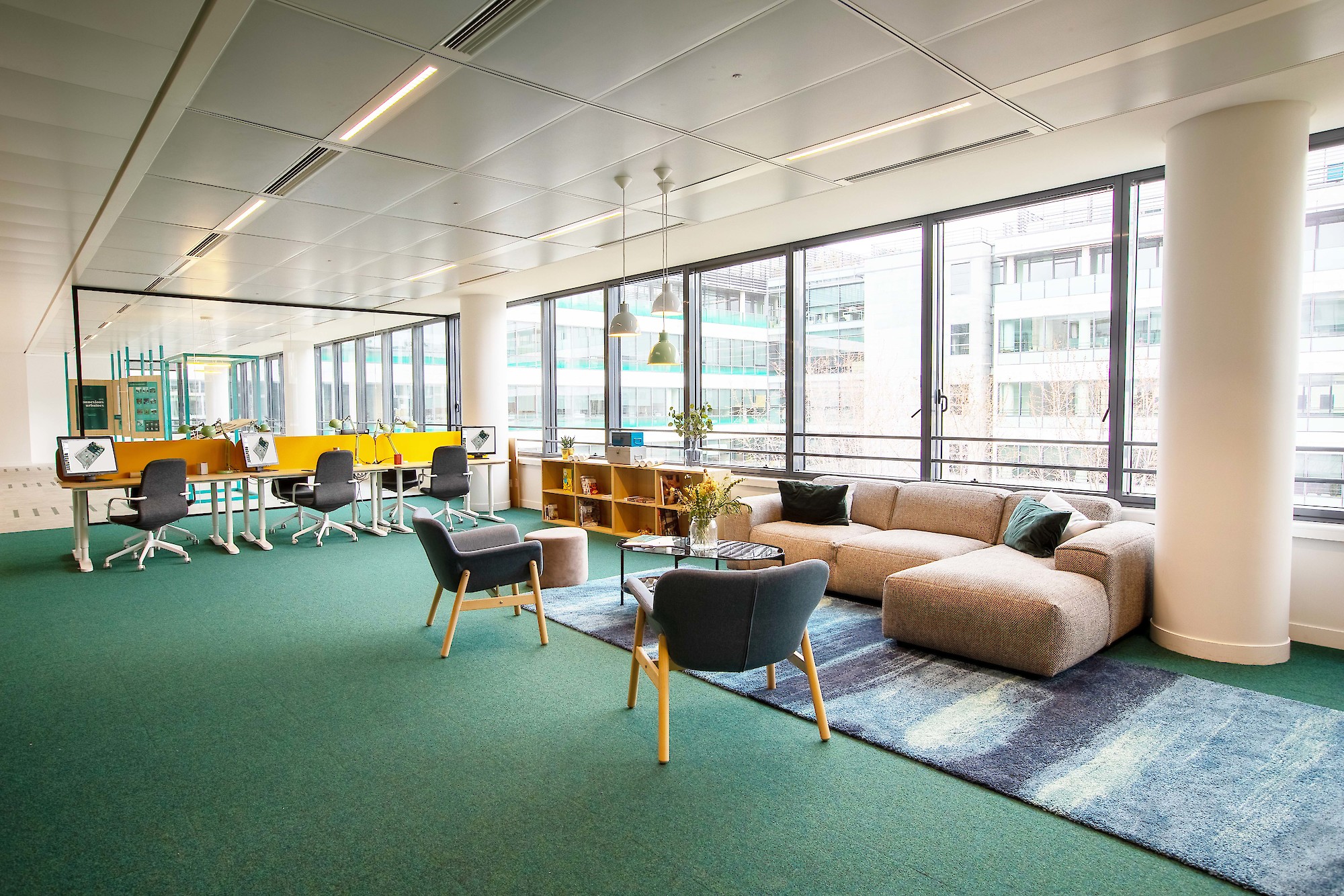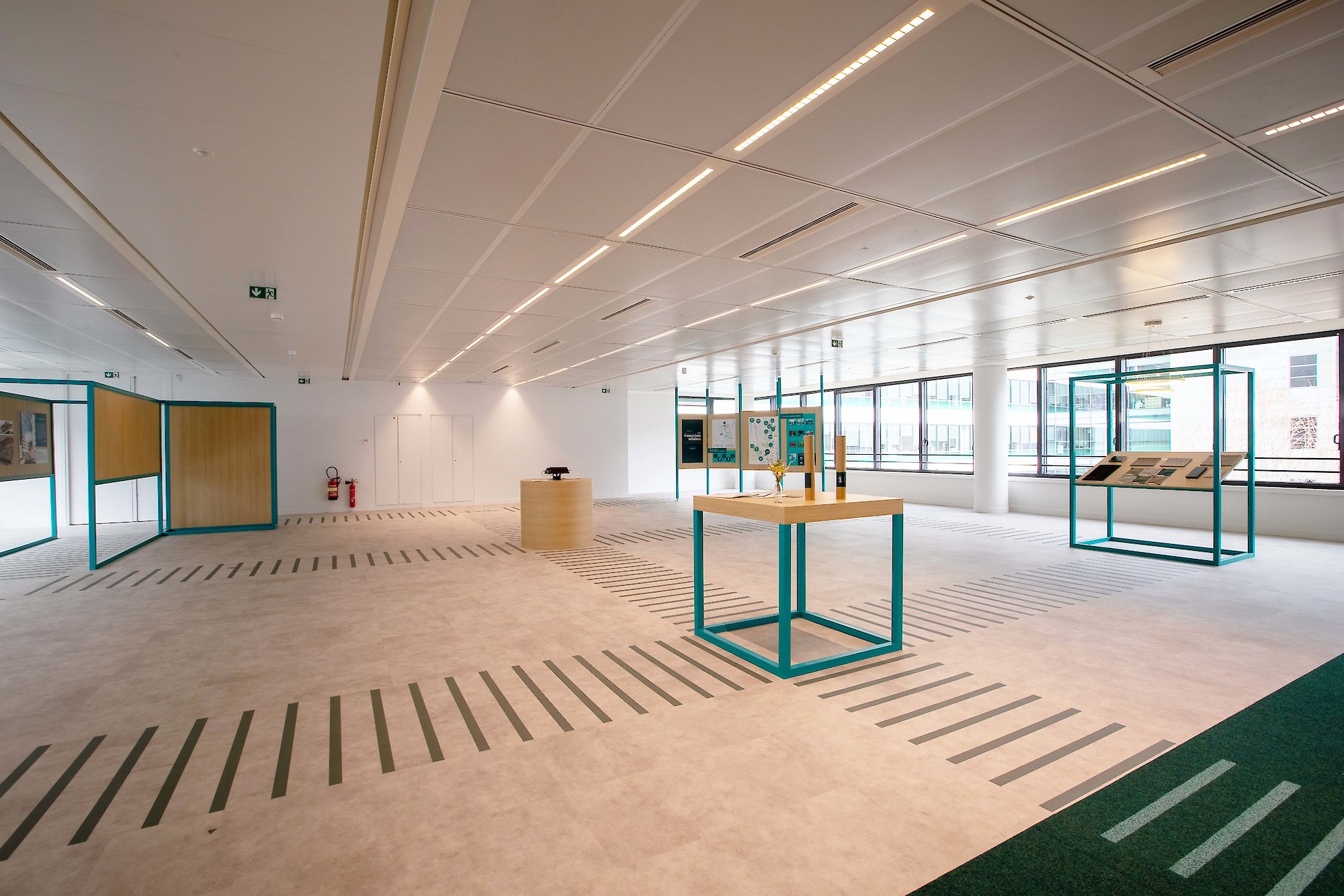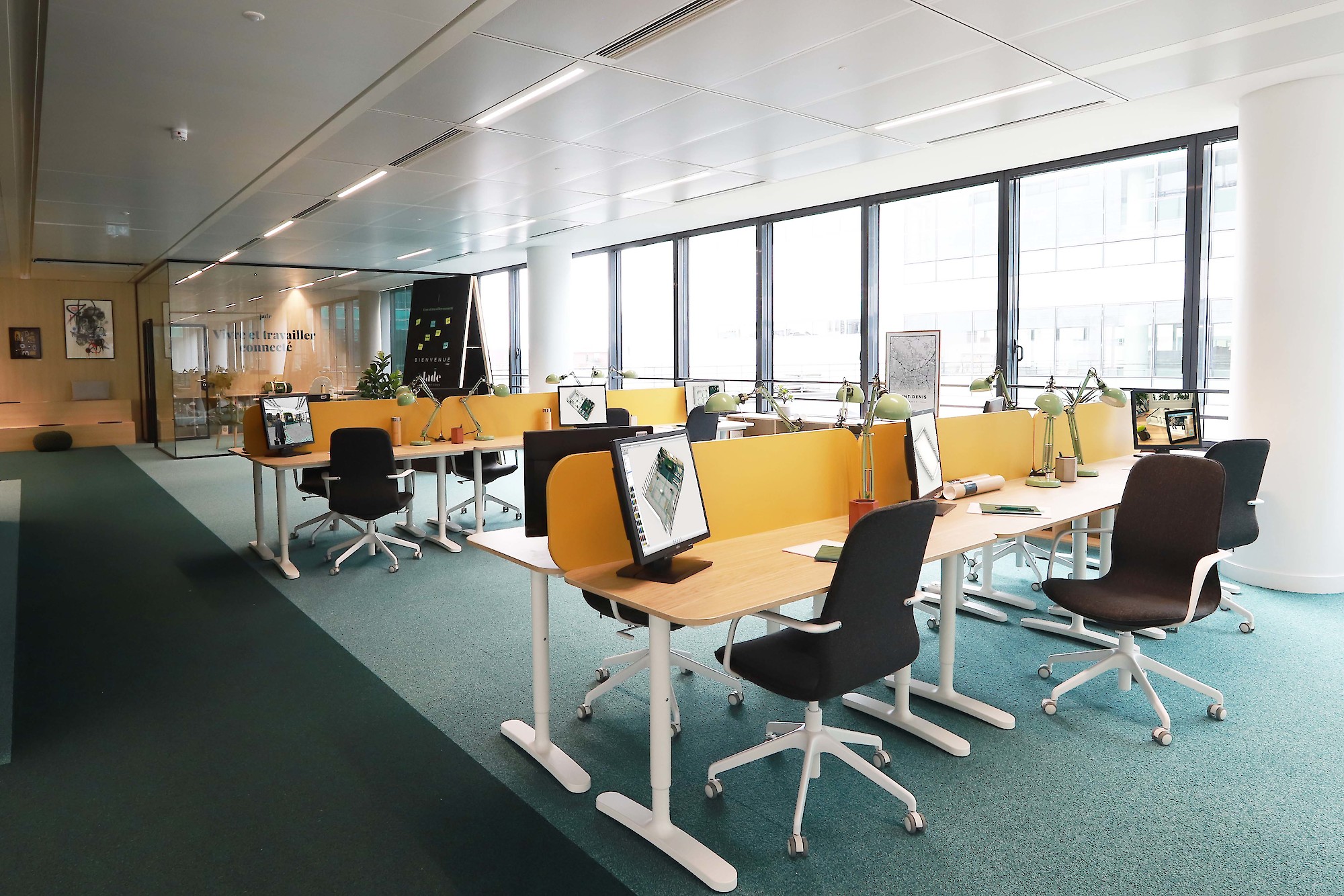 Le Jade à Saint-Denis est à la fois une marketing suite, sympa, ludique et riche et un bureau parfaitement praticable ! Il n’était pas question pour nous de faire une de ces Marketing Suites remplies de vides avec 2/3 éléments perdus dans un espace surdimensionné. Alors oui le client souhaitait, idéalement, nous voir remplir les 700 m2 disponibles avec un budget contraint, bien que généreux, à du 300 m2, 400 peut être ? Mais pas plus... Alors nous, malins, nous avons proposé d’optimiser l’investissement en consacrant 1 quart du lieu à une scénographie, légère, couvrante, 2 quarts à l’aménagement de bureaux modernes et convaincants, et le dernier quart, caché, derrière des rideaux, comme pour dire “regardez, vous pouvez là aussi étendre vos bureaux... Pari réussi, voyez par vous même !