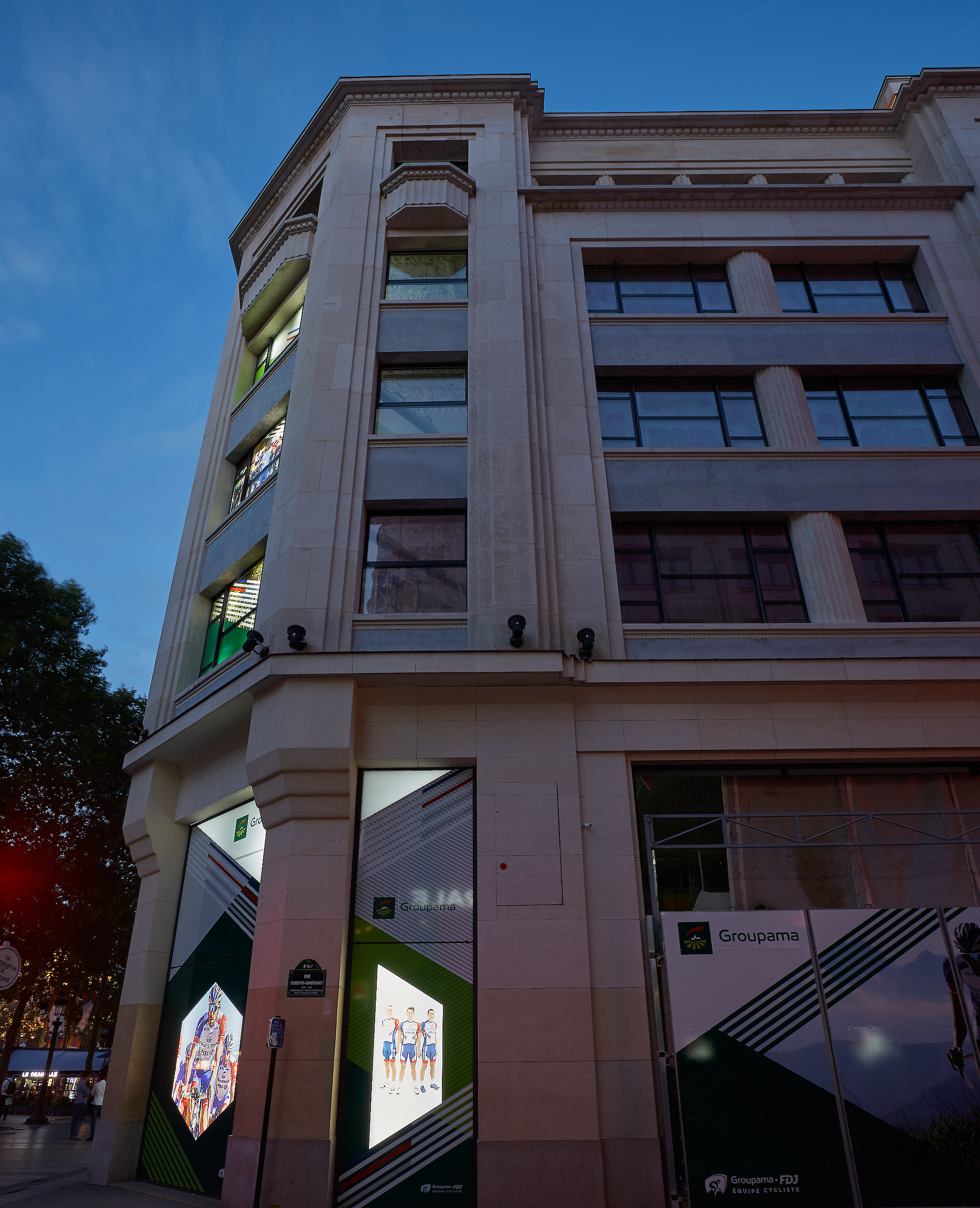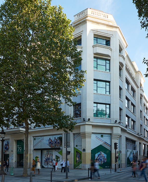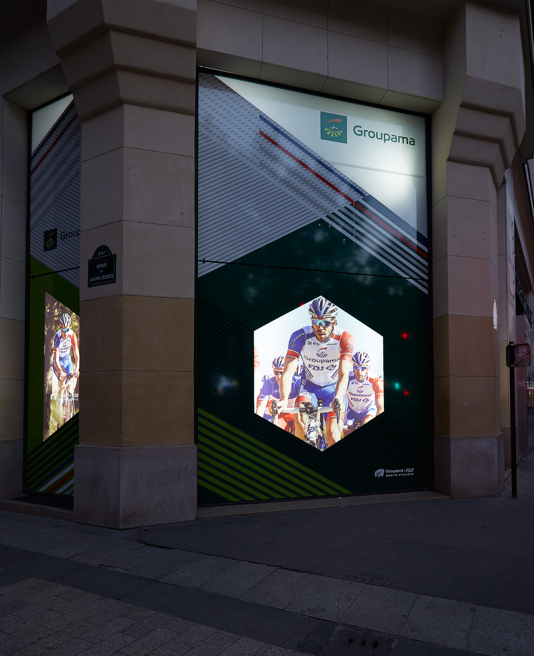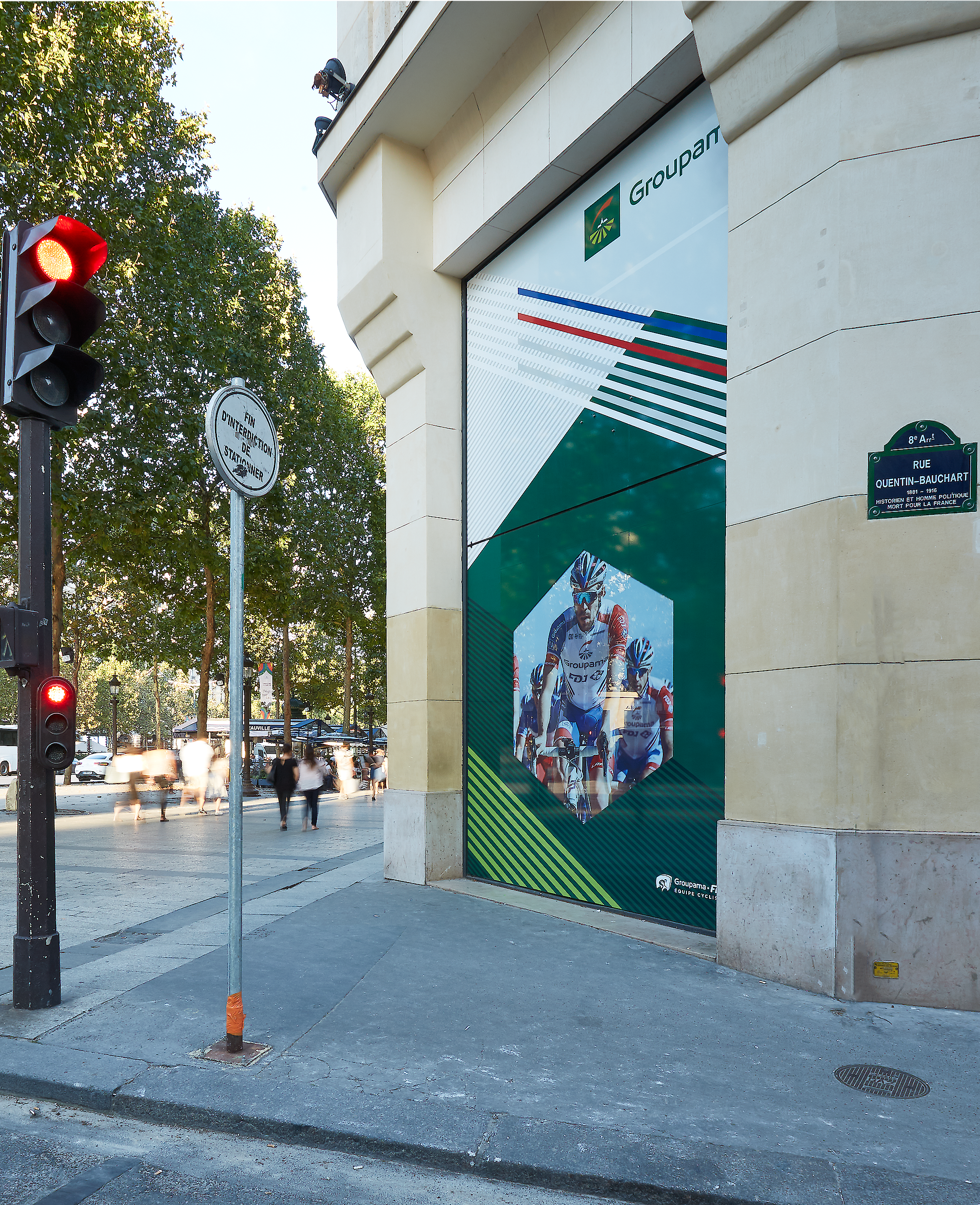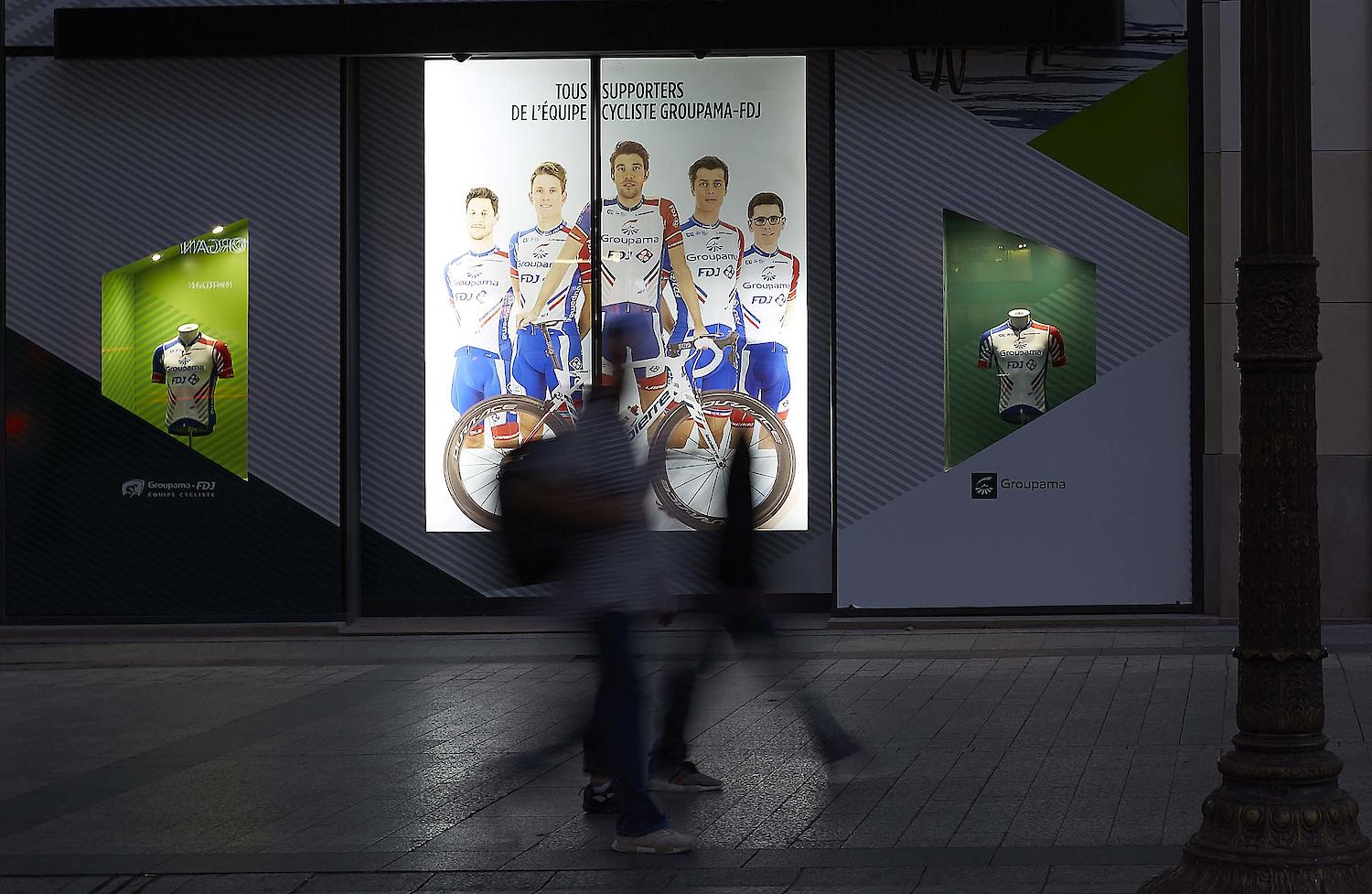 Clap de fin pour les cyclistes, les Champs Elysées marquent l'étape finale de l'exploit sportif. Cette scénographie parisienne, supportrice de l'équipe Groupama-FDJ, est à retrouver au numéro 79 sur l’emblématique avenue des Champs Elysées