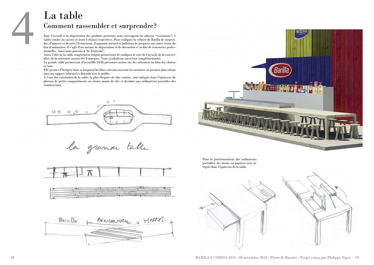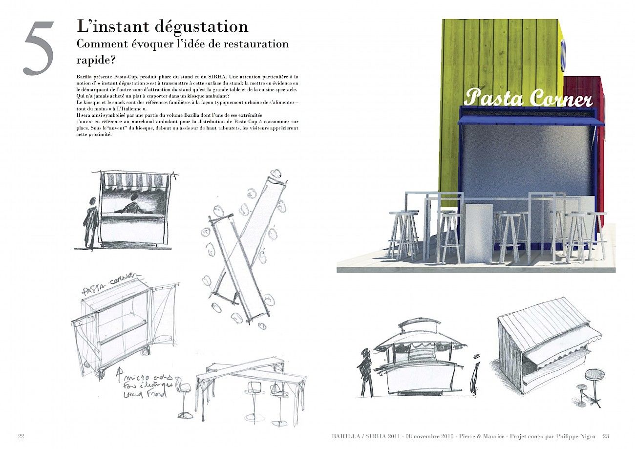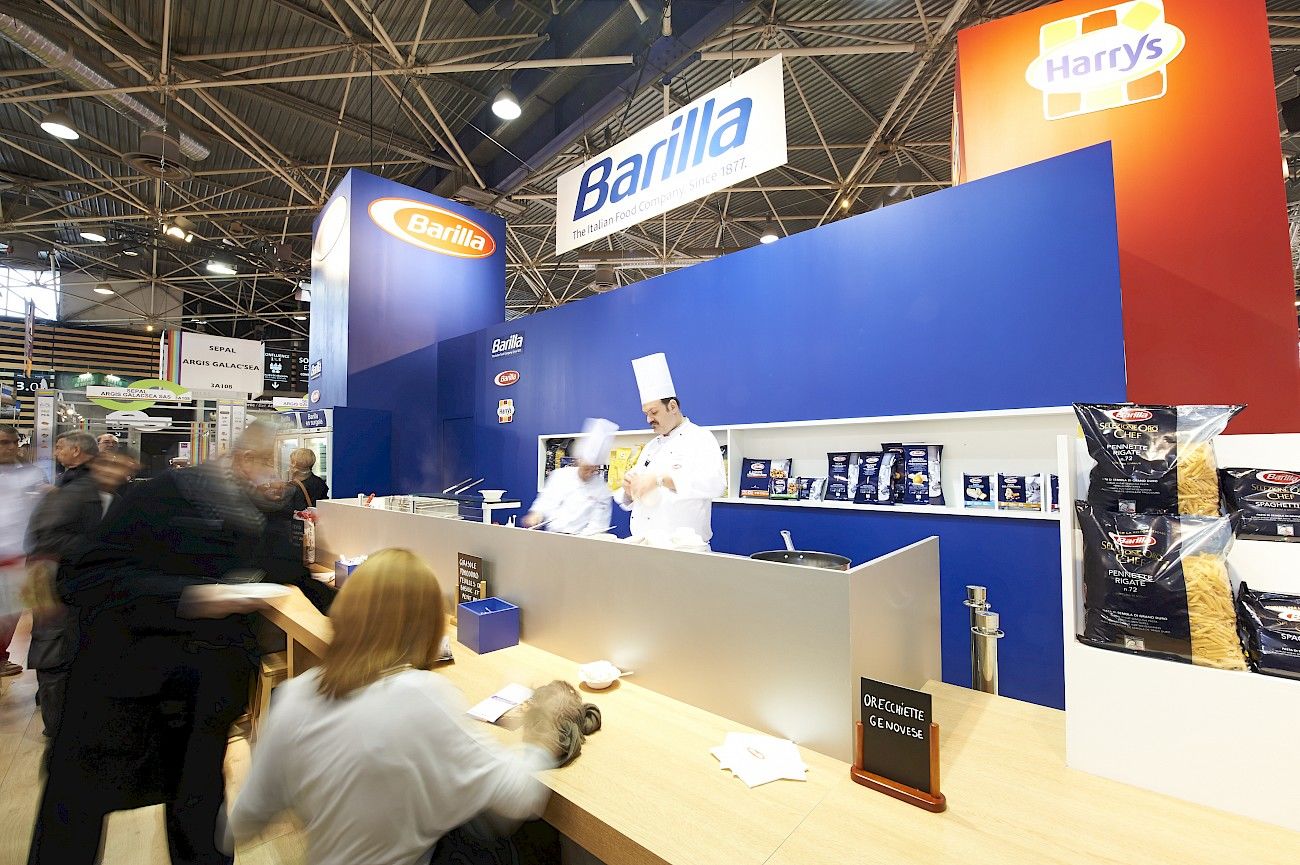 Nous avons réalisé la charte merchandising et architectural du groupe Barilla et de ses marques GMS. Cette charte, destinée aux salons et événements professionnels a offert à notre client les particularités d'un concept de restauration fort et durable : Trattoria de 15 mètres de long, cuisines d'appoints, mise en scène produit et gestion des espaces business par "temporalité" (matin, midi et soir).