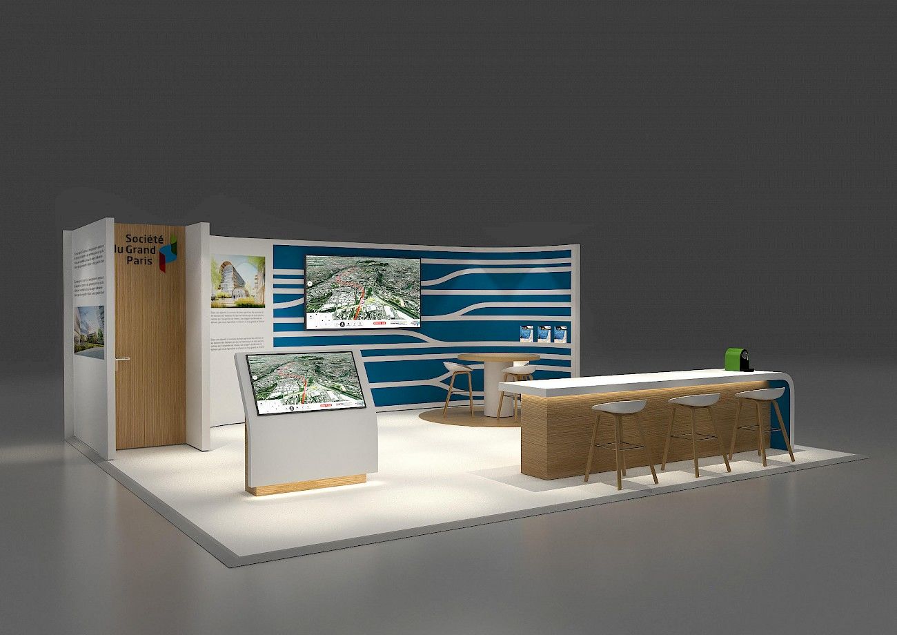Traduire le mouvement la modernité, l’action et l’institution dans un geste fort et déclinable sur des surfaces variables, communiquant tantôt sur ses projets d’aménagements urbains, tantôt sur ses réseaux, nous devions marquer les esprits avec un environnement architectural ambitieux et souple à la fois.