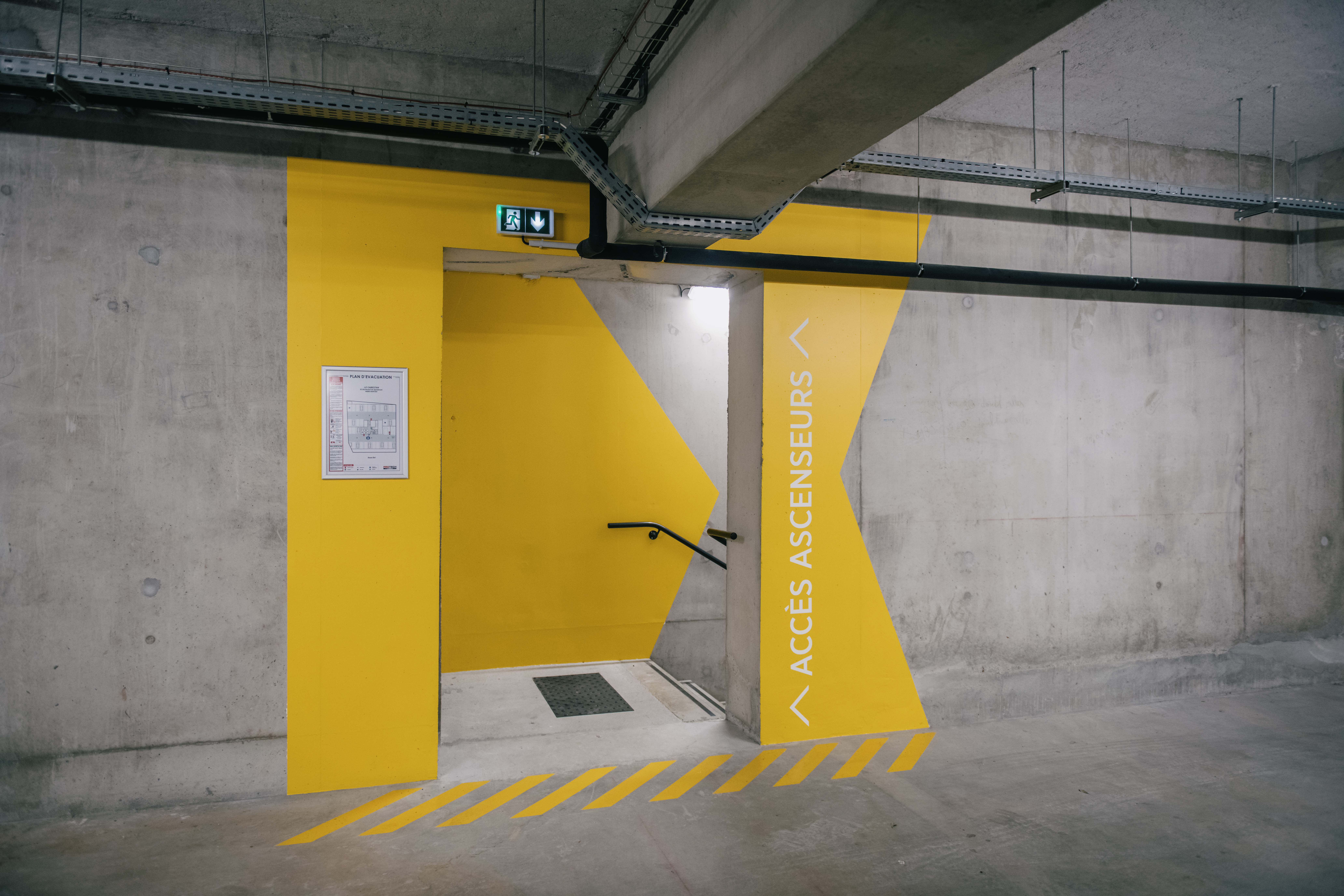 L'exercice aura consisté à imaginer une segmentation commerciale permettant au mieux l'exploitation des lieux par 4 à 5 affaires autonomes. Chaque espace étant finalement aussi exploitables comme un tout relié par 2 couloirs filants communs.